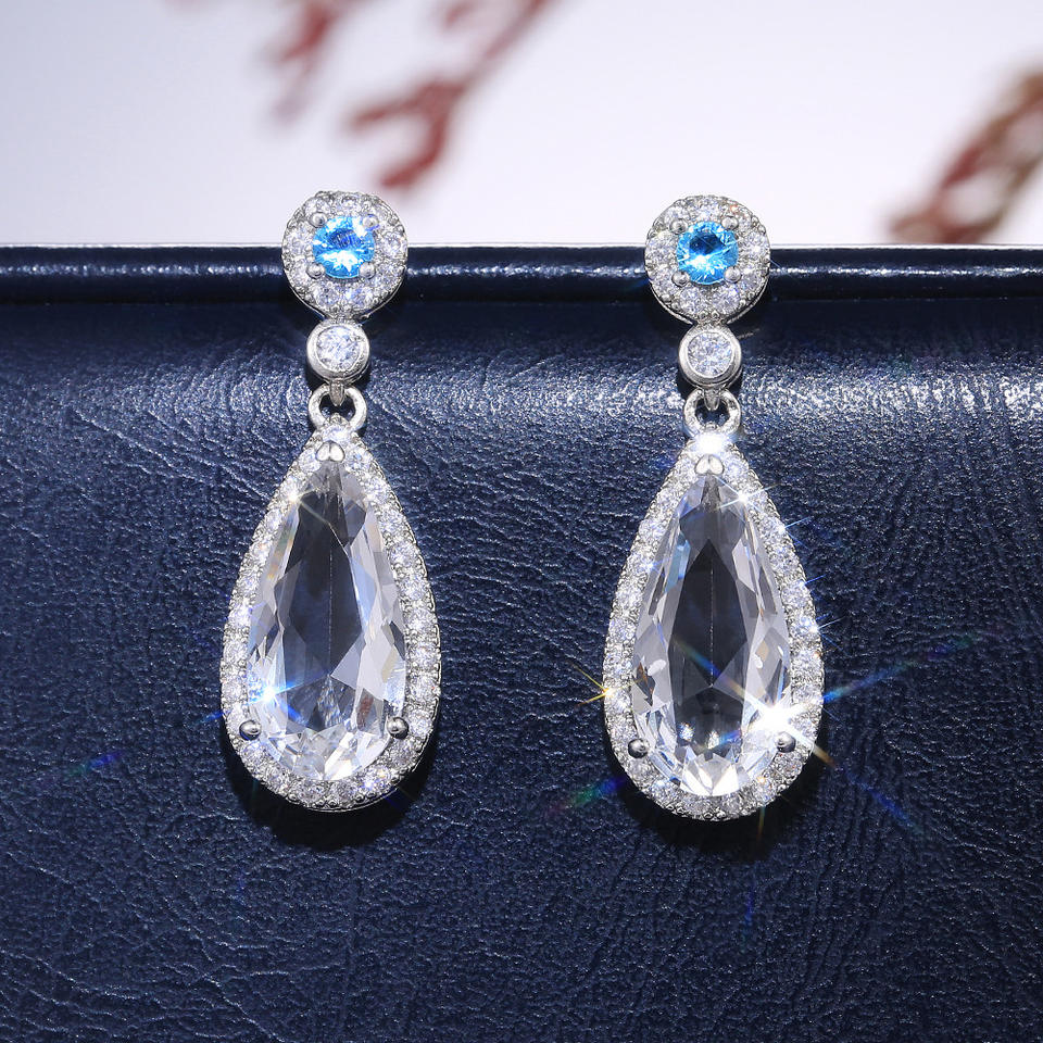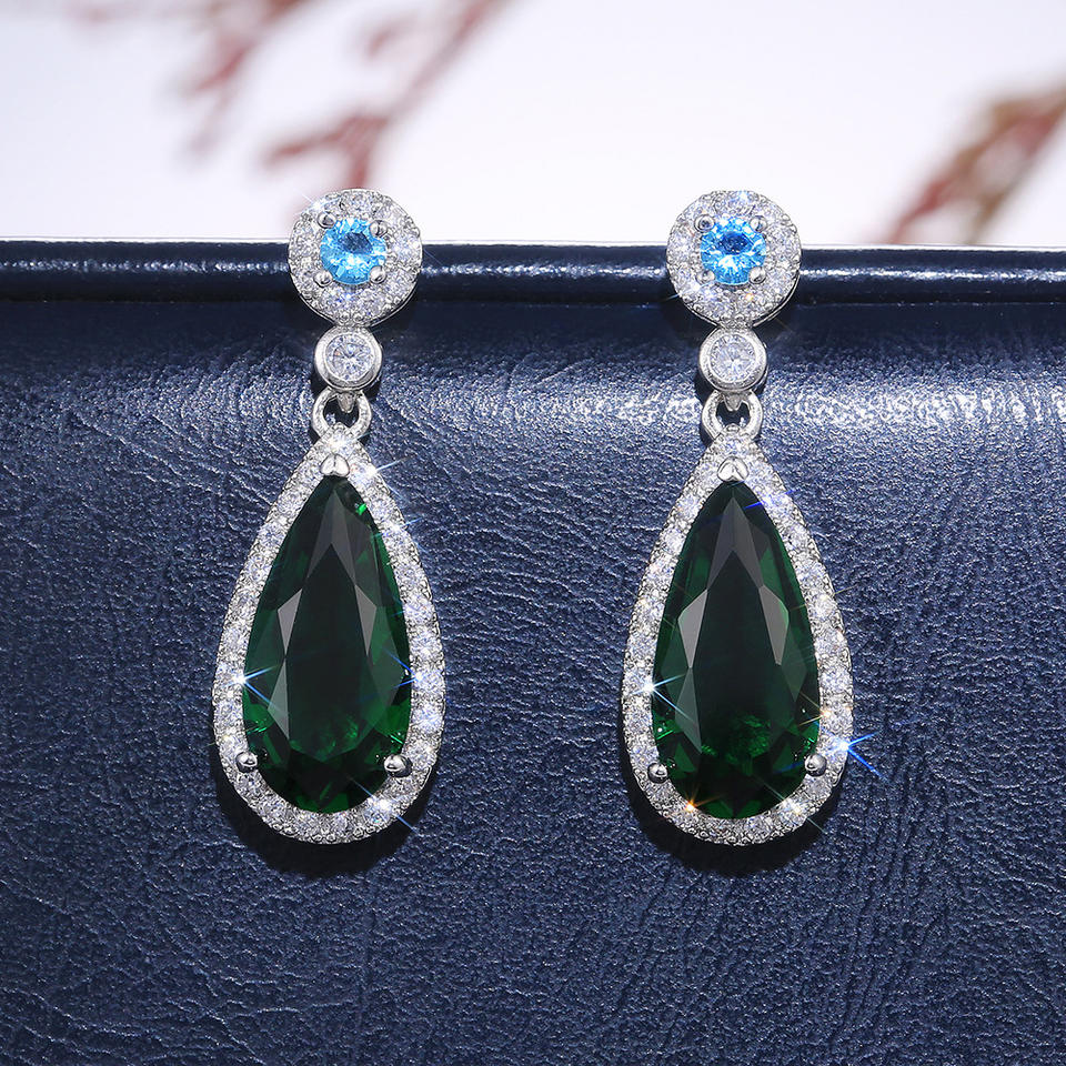 Orecchini di lusso in argento 925 con cristalli a goccia per donna, gioielli da festa, orecchini pendenti con montatura a castone verde E561