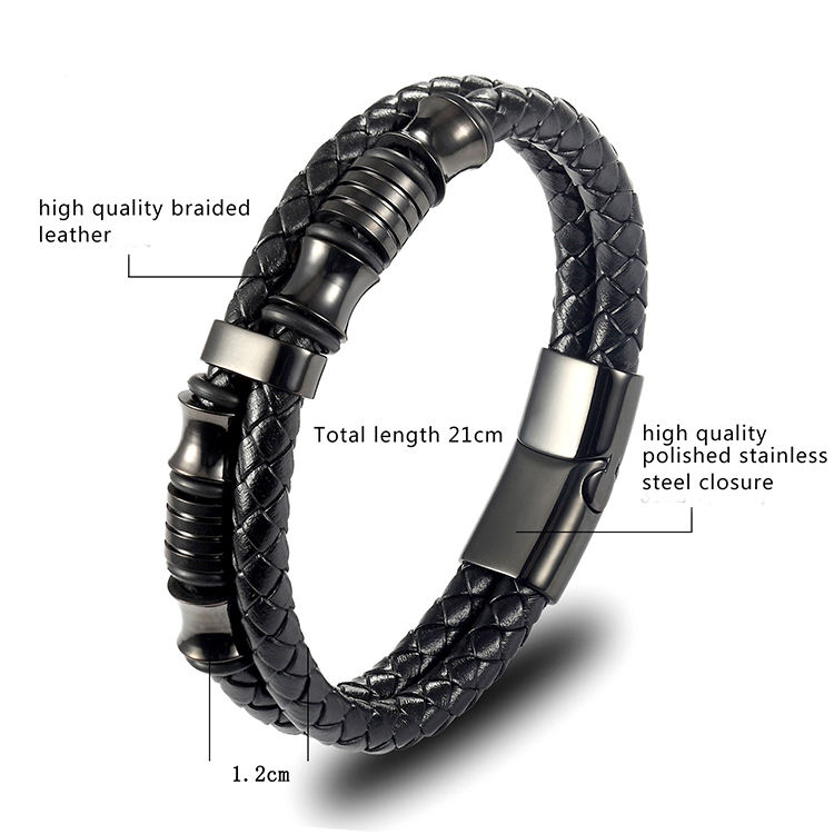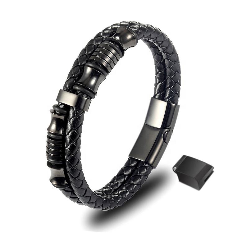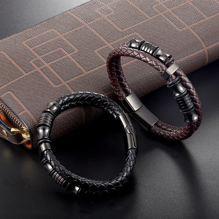 Accessori di lusso perline di alta finitura in acciaio inossidabile personalizzano bracciale in pelle intrecciata marrone nero per gli uomini regalo di compleanno