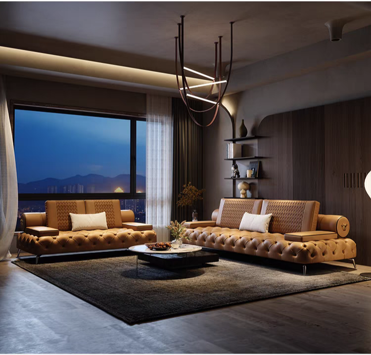 Nome del prodotto:Divano in pelle stile americano Set 1 + 2 + 3 posti