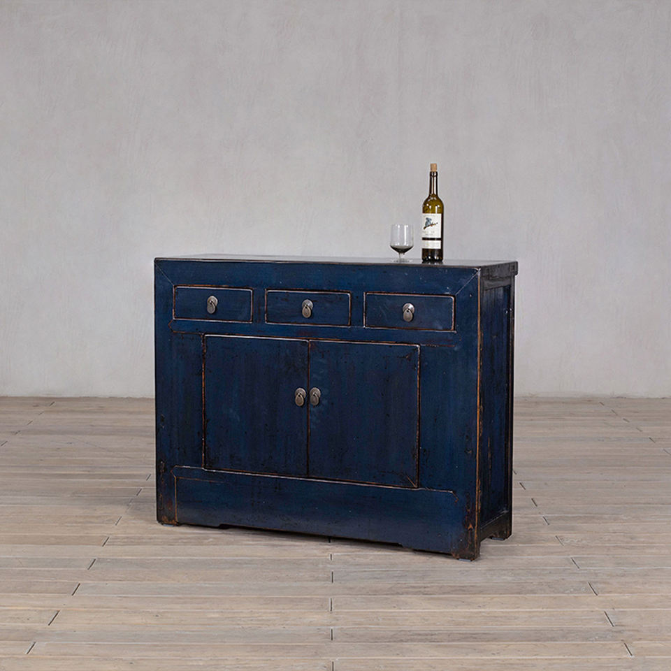 Credenza di Lusso in Stile Antico in Legno Massello con Tre Cassetti e Due Ante, Elegante Mobile per Hall di Hotel e Soggiorno