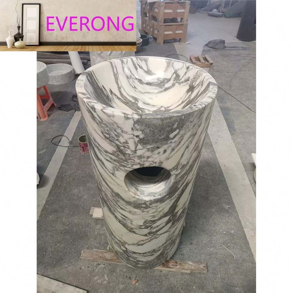 Lavabo a Colonna in Marmo Bianco Arabescato di Lusso, Ideale per Design di Bagni di Alta Gamma