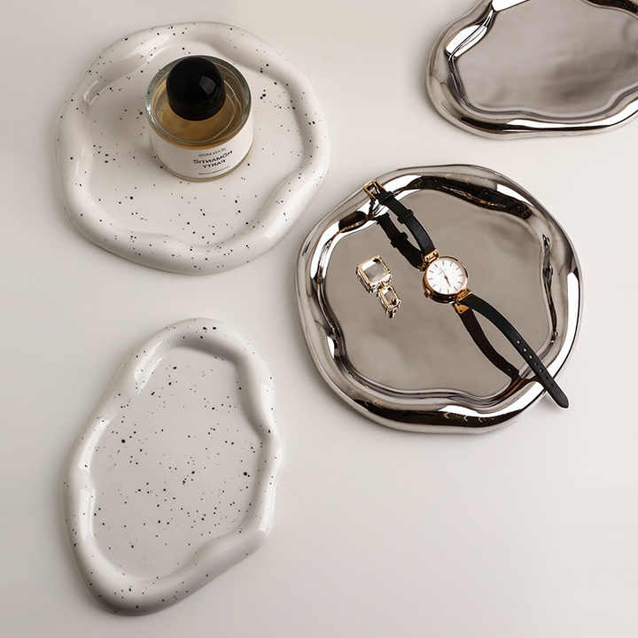Luxury Artisan Ceramic Cloud Tray - Silver Electroplated Fruit Dessert Serving Plate, Decorative Storage Tray