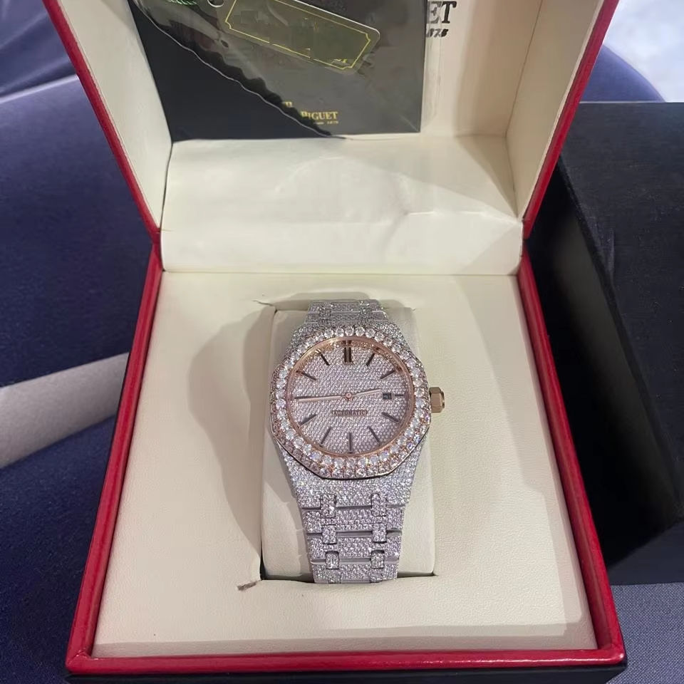 Orologio di Lusso Automatico da Uomo e Donna con Moissanite Ghiacciata VVS Colore D Vetro Zaffiro Cassa Impermeabile Acciaio Inossidabile Sveglia Subacqueo