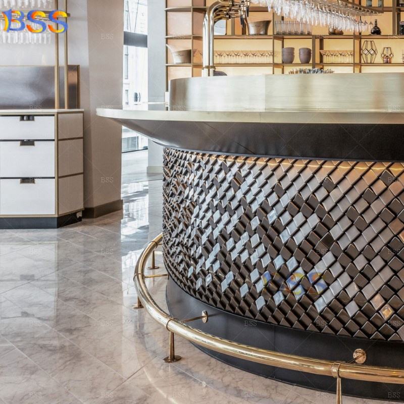 Bancone da Bar di lusso personalizzato 3D oro inossidabile locale commerciale ristorante e bancone tondo Bar