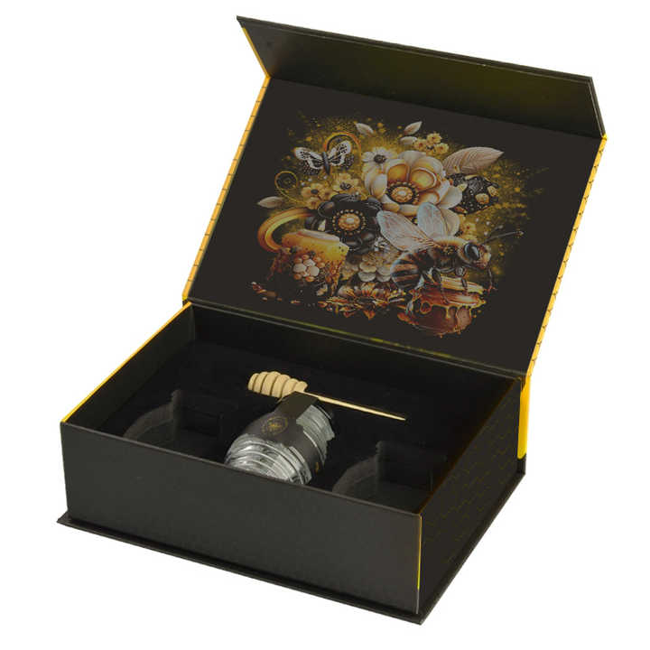 Pacchetto di lusso nero a forma di cartone rigido in carta Vip ape miele vaso bottiglia barattoli confezione regalo Embalagem De Pote De Mel