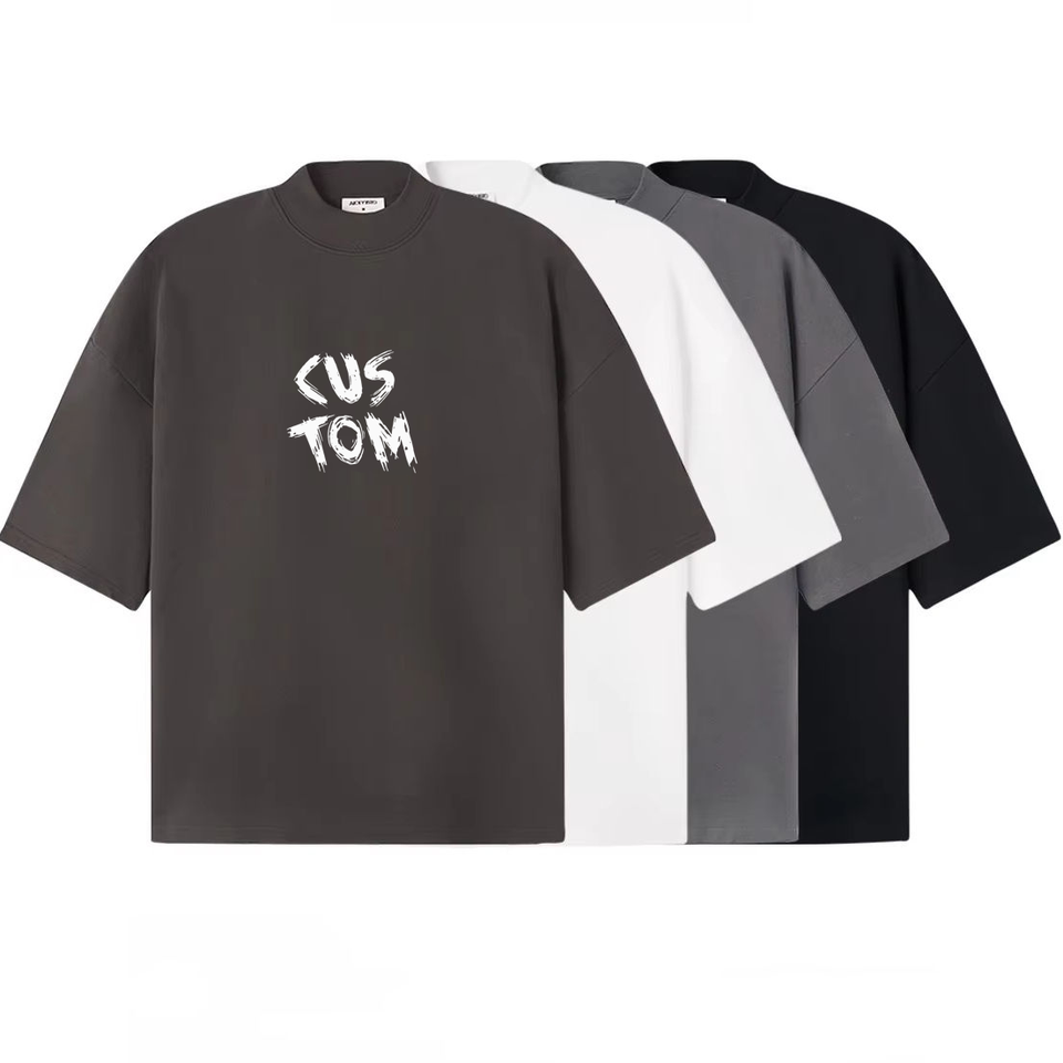 T-shirt girocollo di lusso personalizzabile OEM all'ingrosso da uomo, con spalle scese, vestibilità oversize, collo ampio e spesso, personalizzabile, tinta unita per streetwear