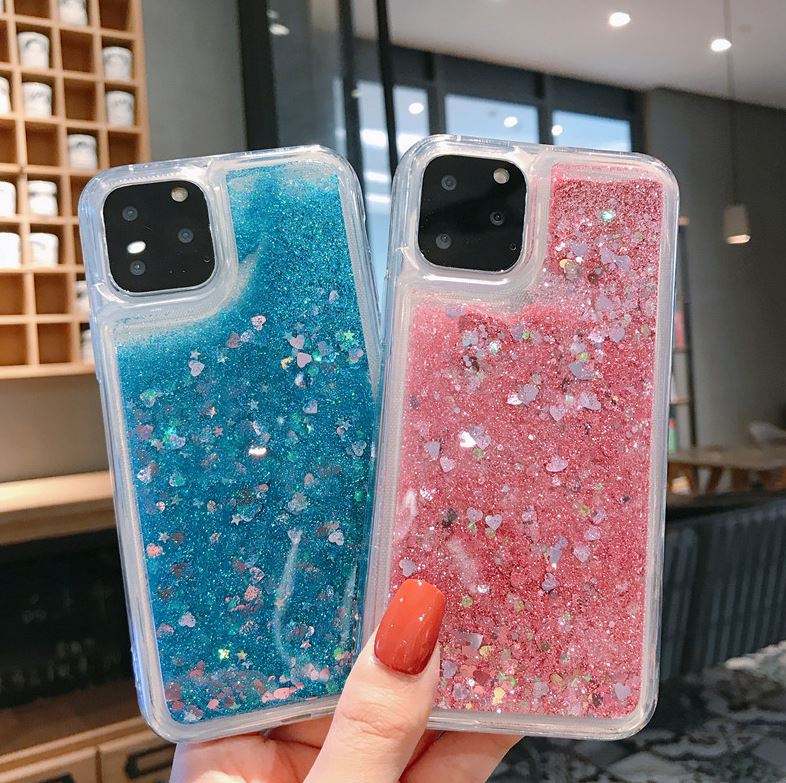 Custodia per cellulare Quicksand Glitter Bling Bling di lusso per Iphone 13 Pro Max 12 Mini cover posteriore antiurto a forma di cuore
