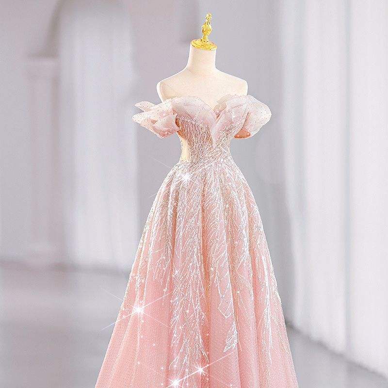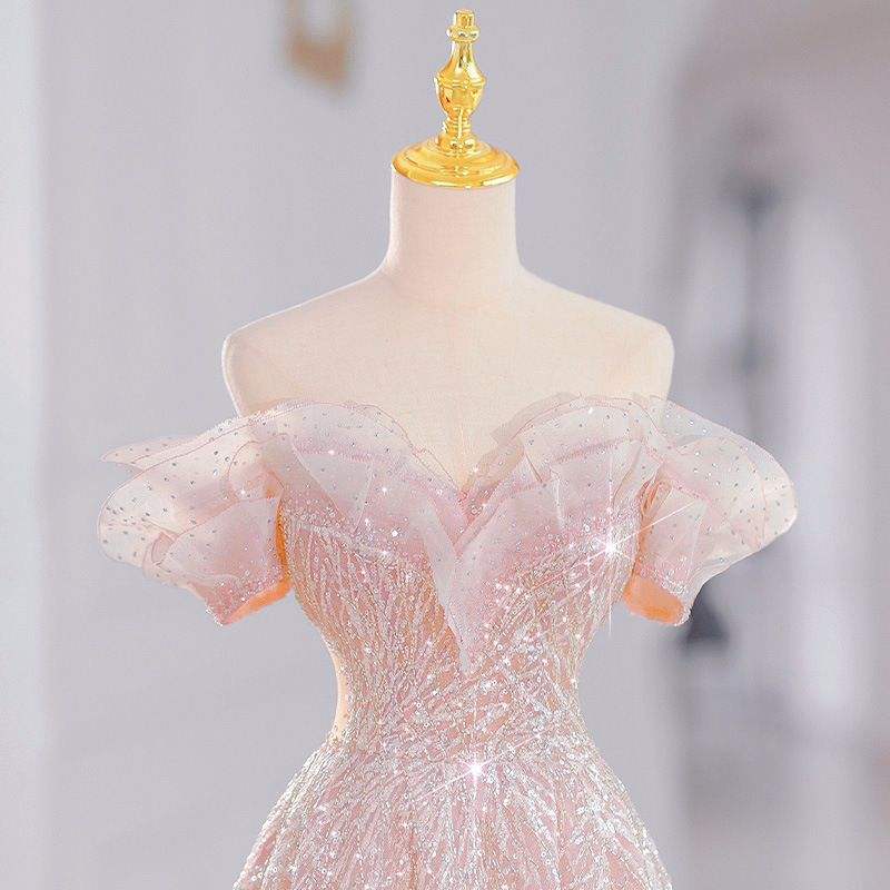 Luxury Bling Bling Princess Evening Party Dress 2024 New Diamond Ruffle off Shoulder Bride Wedding Dresses