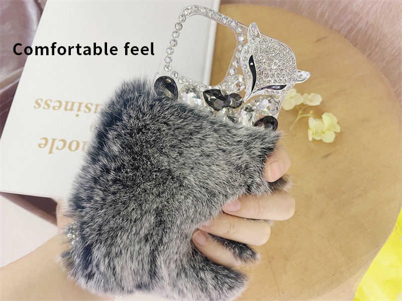 Luxury Bling Warm Soft Beaver Rabbit Fur Hair phone case per iPhone 14 Mini 14 Pro Max Diamond Fur case