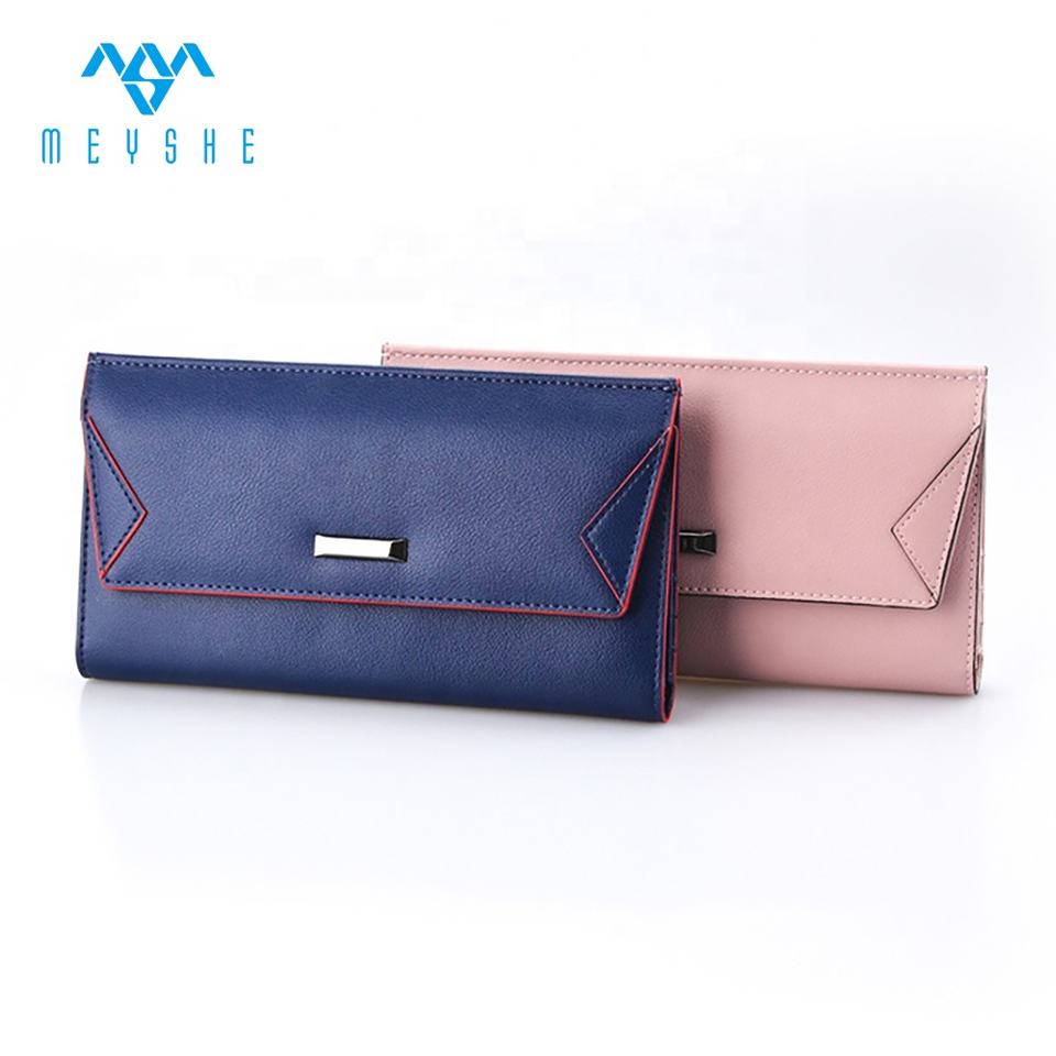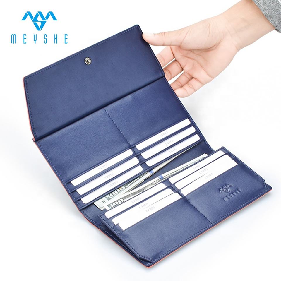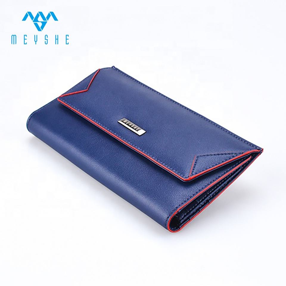 luxury blue long genuine leather woman wallet
