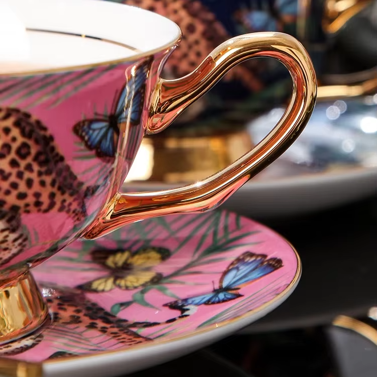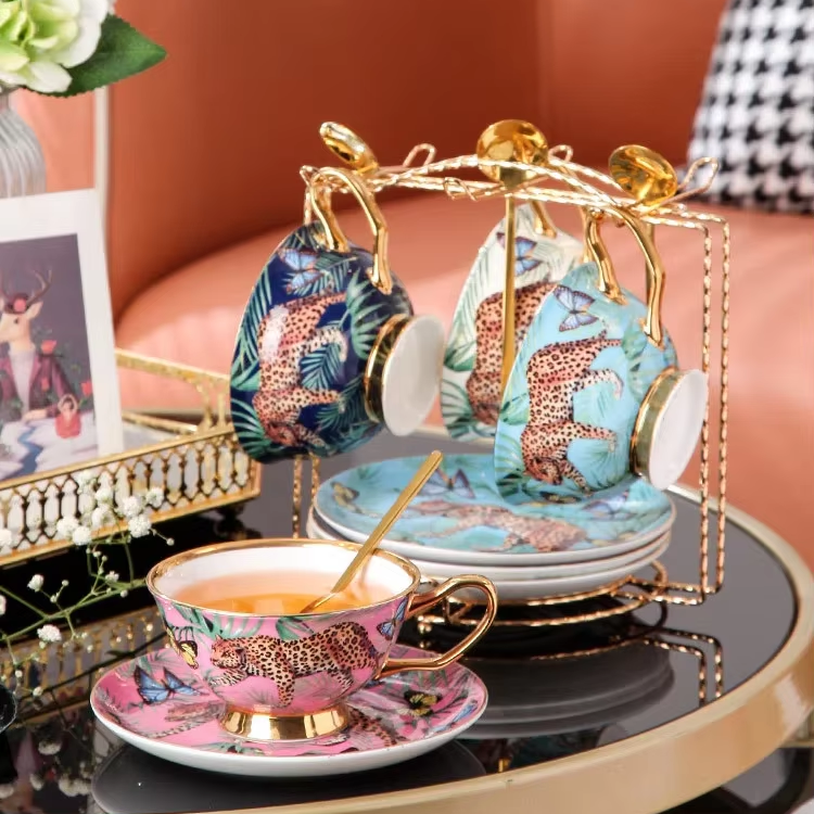 Luxury Bone China Turkish Ceramic Eco-Friendly Jungle Pattern Coffee & Tea Cup and Saucer Set Home Afternoon Tea Arab Coffee