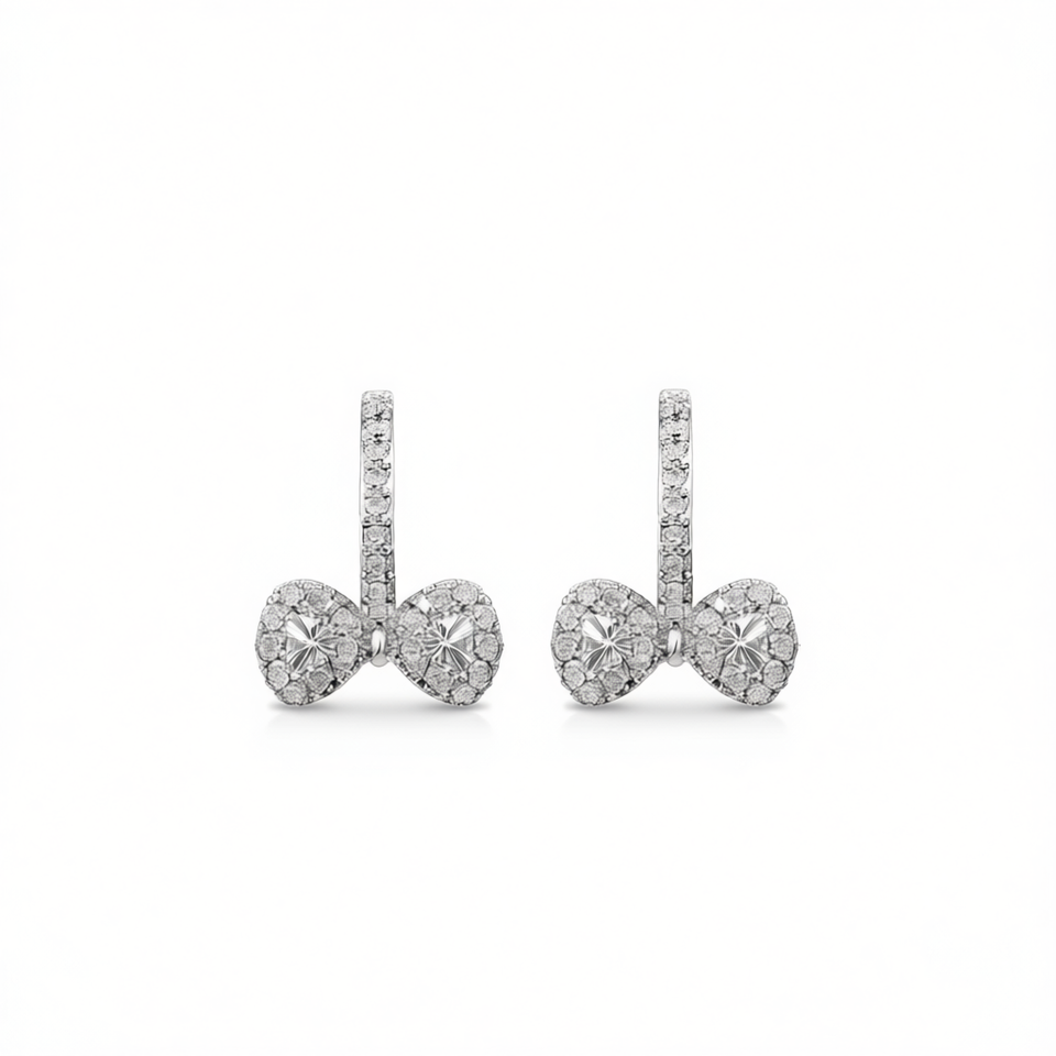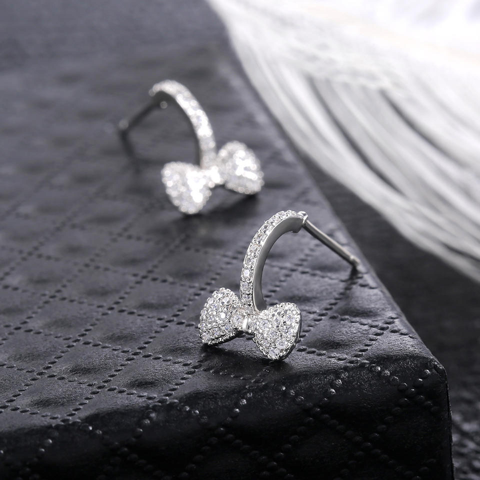 Luxury Bowknot Stud Earrings 925 Silver Crystal Rhinestone Wedding Women's Jewelry