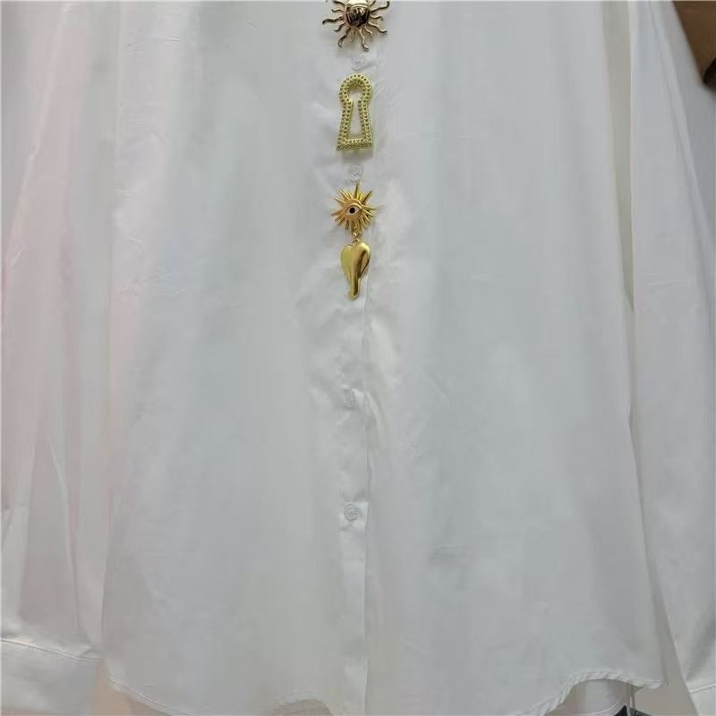 Camicette di Lusso con Paillettes Rimovibili in Cotone per Donna, Tendenza 2026, Elegante Top a Maniche Lunghe Bianco e Nero