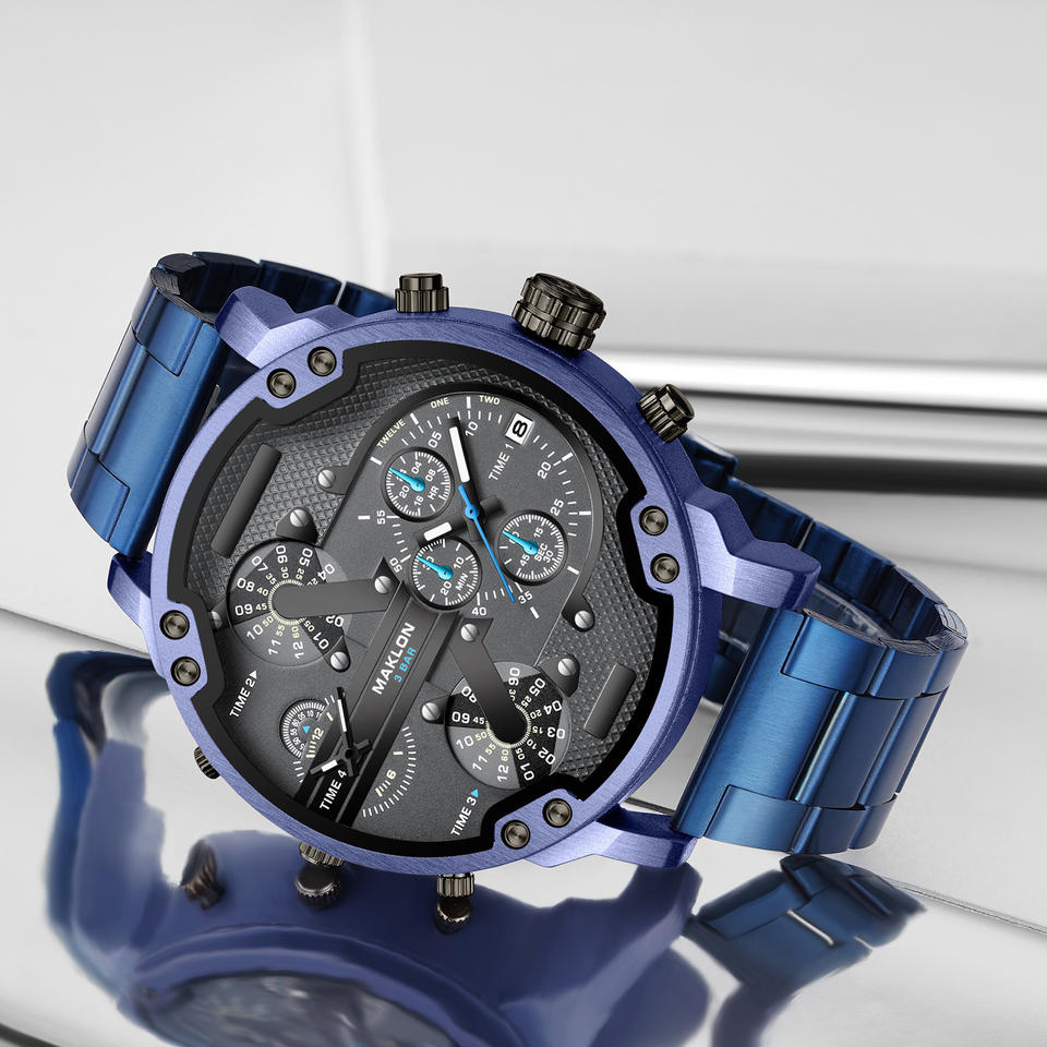 Orologio al Quarzo di Marca di Lusso per Uomo, Cassa Grande da 49mm, Cinturino in Acciaio Rosso, Orologio Sportivo da Polso, Relogio Masculino