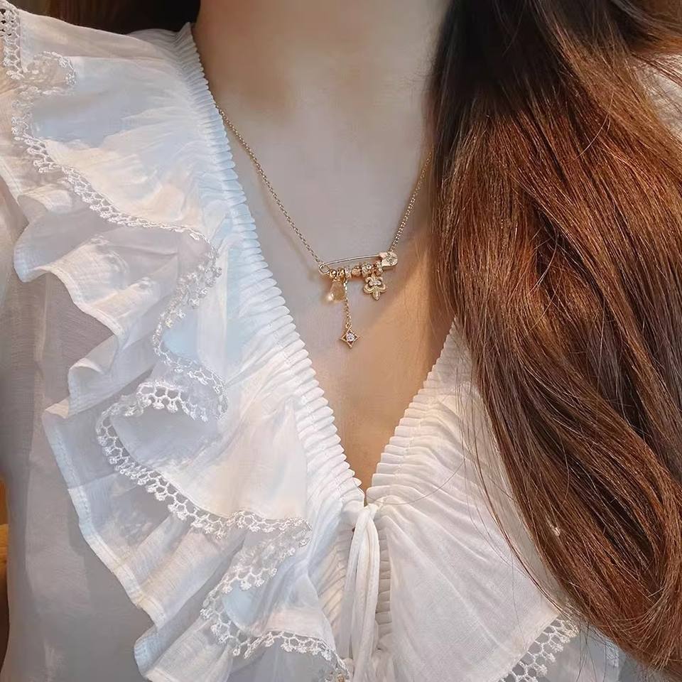 Luxury Brushed Iris Flower Star Yellow Water Pendant Pin Necklace Vintage Gold Plated Diamond Pin Necklace for Women