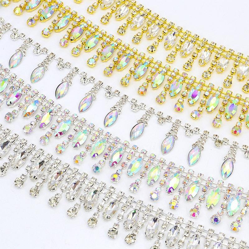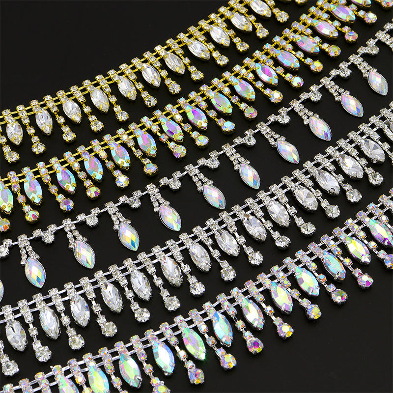 Strass di cristallo di lusso CZ catena di pizzo fai da te accessori per vestiti a goccia di vetro con nappa frangia artiglio con cornice diamantata