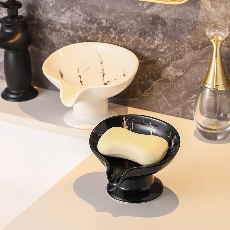 Luxury Ceramic Soap Dish with Gold Pattern Slanted Drain Tray for Hotel Restroom Bath Sink Vanity Home Use Water Filter Plate