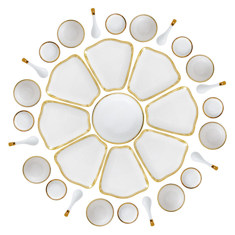Luxury Ceramic Tableware Set for Reunion Dinners Classic Style New Year Family Bowl Dish Popular for Home Use