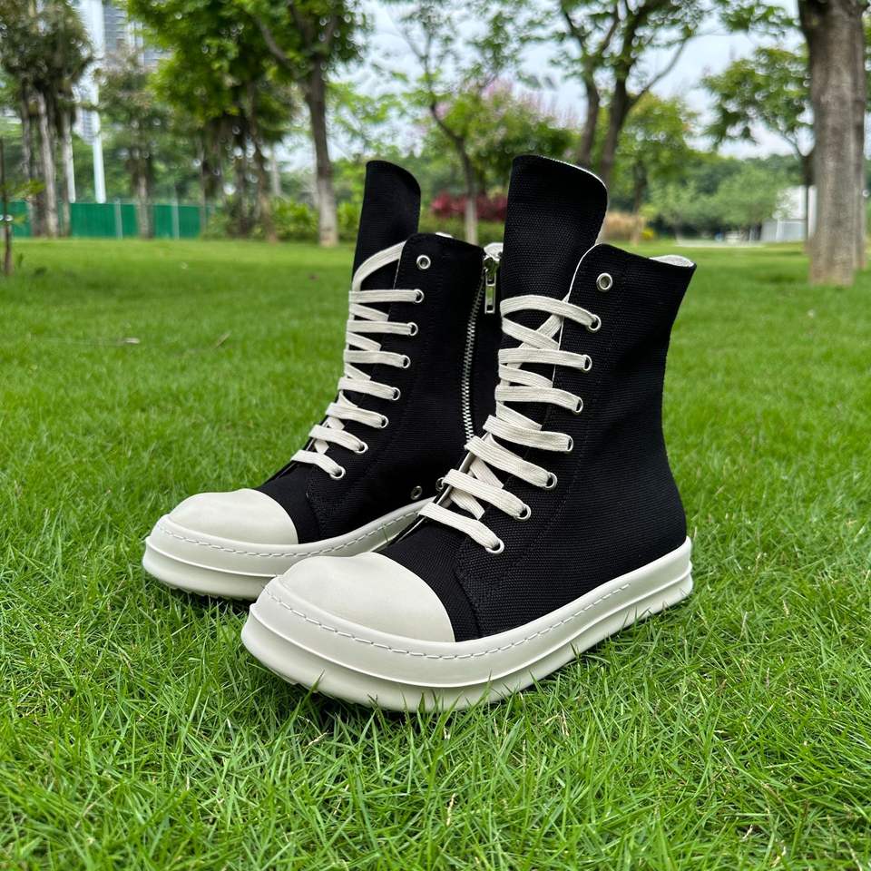 Luxury Classic High Top Sneakers Leather and Canvas Black Cream Owens Designer Shoes