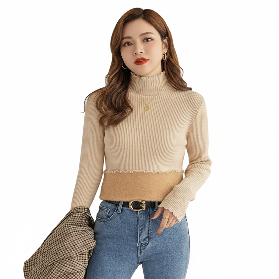 Maglione Invernale da Donna di Lusso, Abbigliamento Usato di Seconda Mano, Collo Semi-Alto, Elastico, Aderente e Morbido