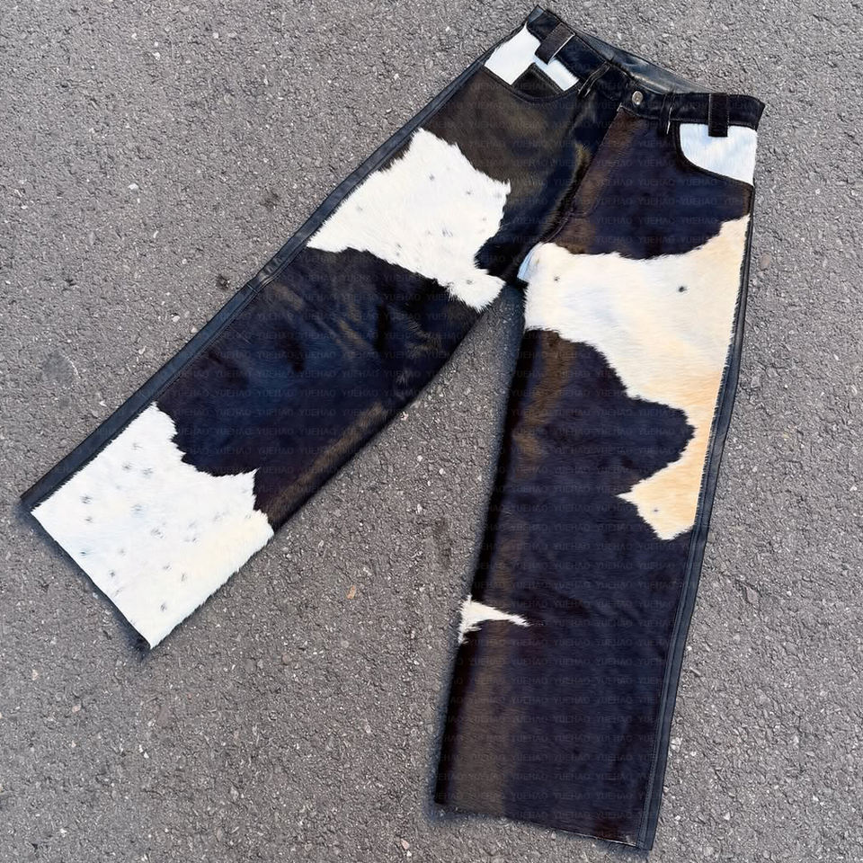 Luxury Clothing Custom High Quality Streetwear Suit Jacket Cowhide Cow Print Outwear Pu Leather Suit Two Piece Pant Men's Set