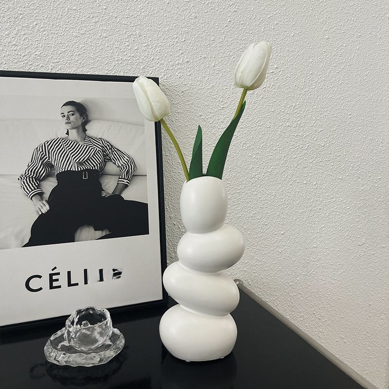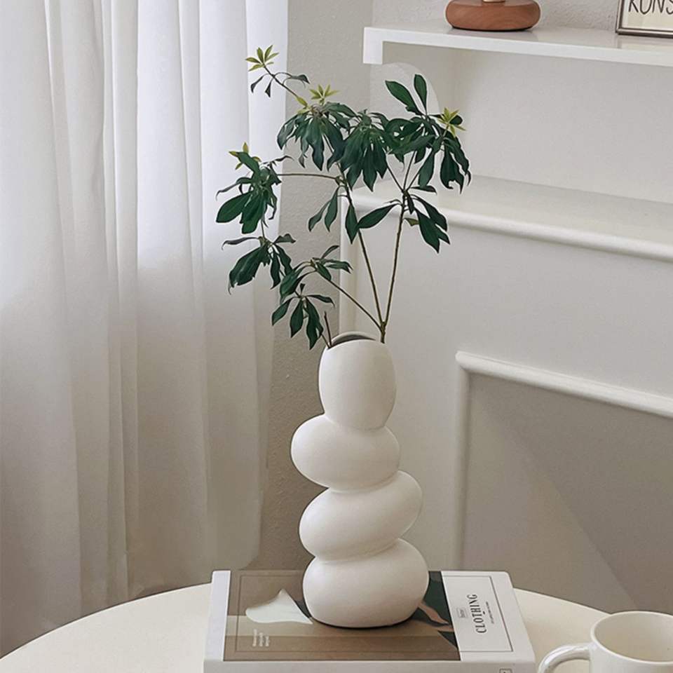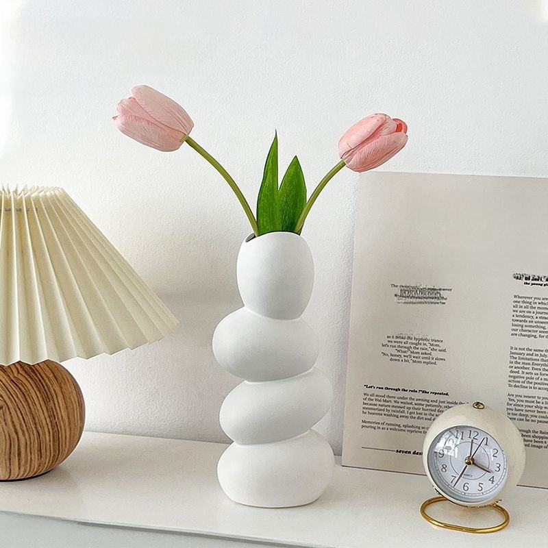 Vaso da Tavolo in Ceramica di Lusso Contemporaneo, Stile Ciottolo Creativo, Resistente ai Graffi, Ecologico, Decorazione Unica per Soggiorno