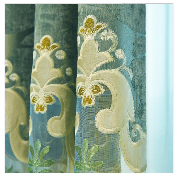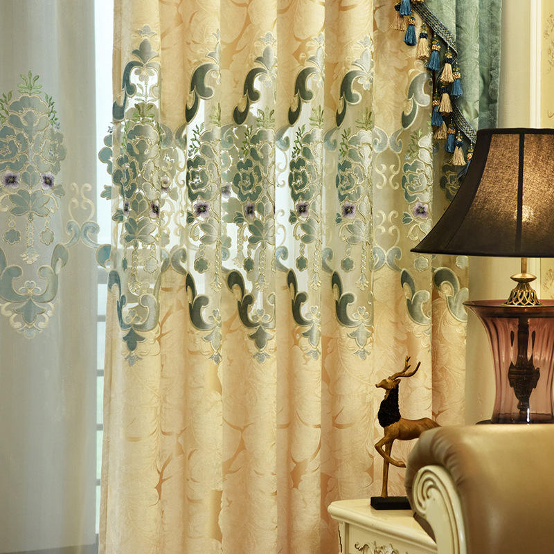 Luxury Cream Color European Living Room Embroidered Luxury Curtain and Bedroom Shading Window Shading Finished Curtain