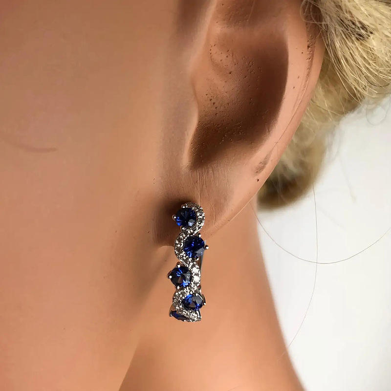 Luxury Crystal Drop Earrings For Women Claw Setting Blue Rhinestone Party Jewelry Elegant Fashion Statement Piece