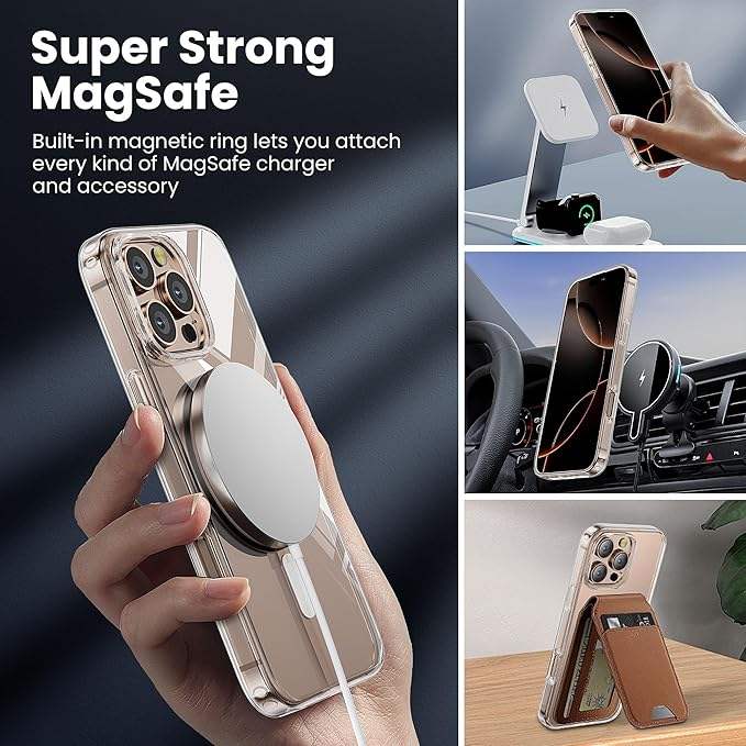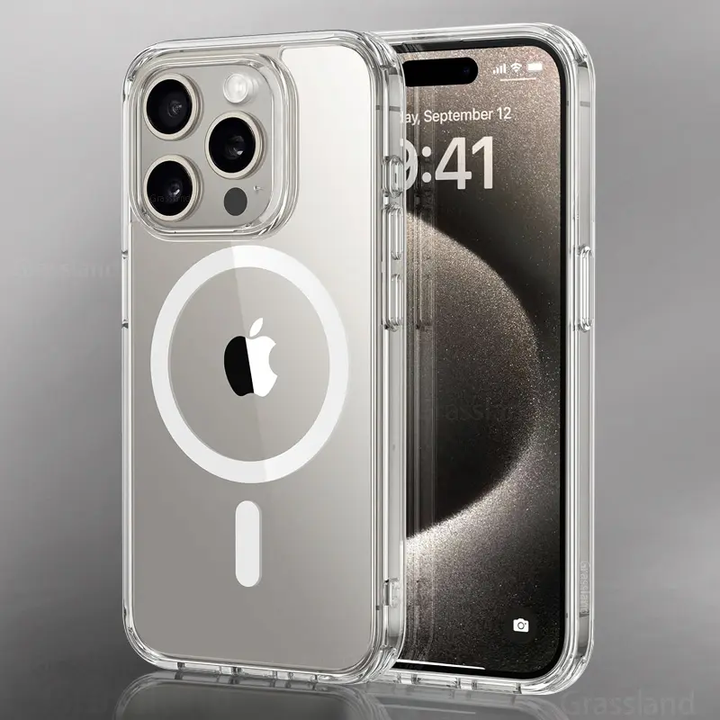 Custodia di Lusso Crystal Magnetica per iPhone 17 16 15 14 13 12 11 Pro XR XS Max Plus con Ricarica Wireless, Cover Posteriore Trasparente