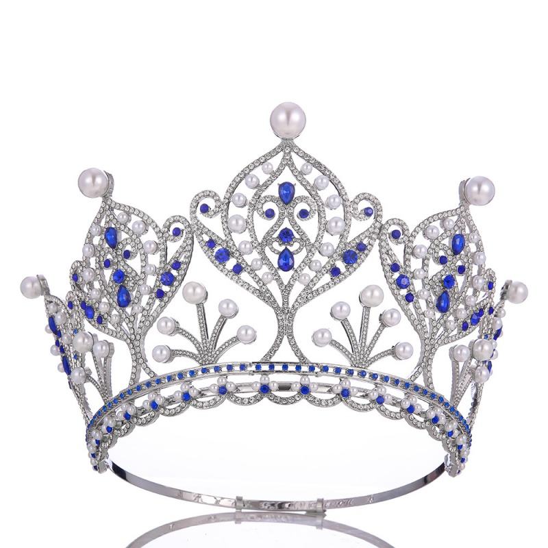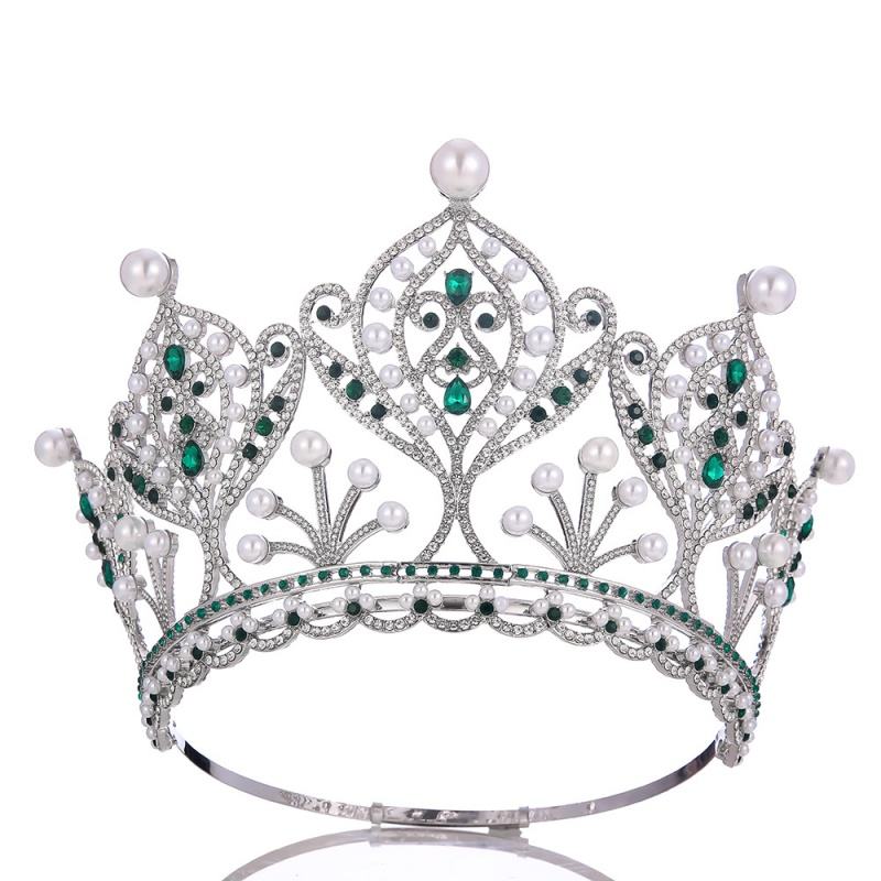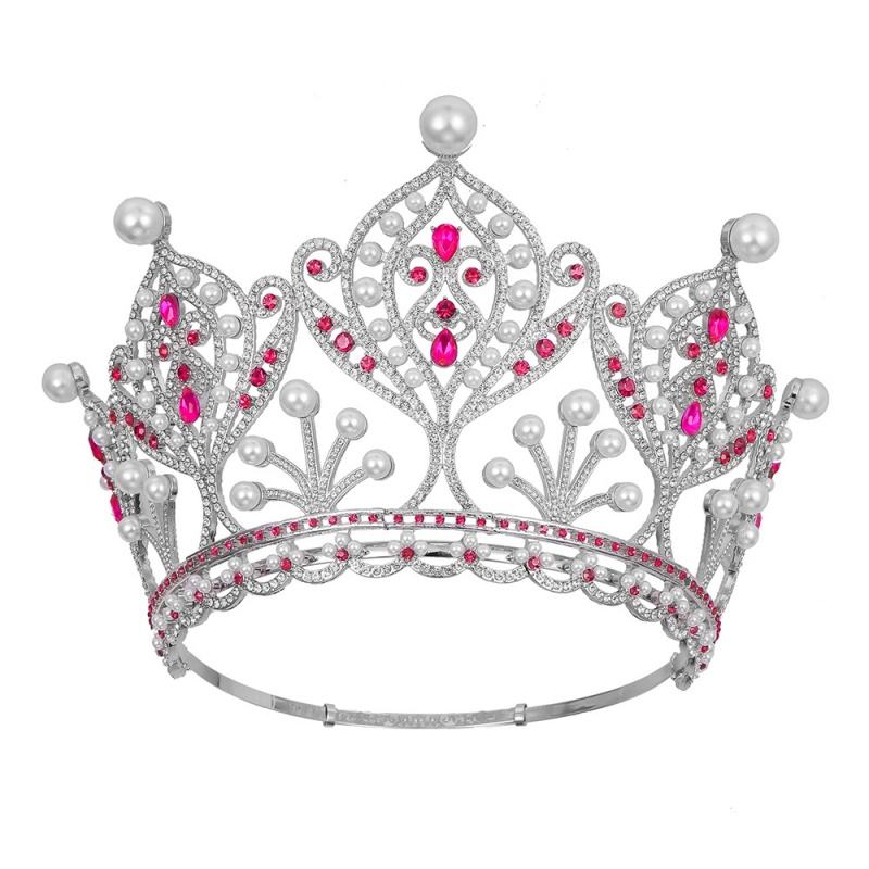 Diadema di perle di cristallo di lusso grande corona regolabile in lega completa rotonda alla moda accessorio per capelli corona di diadema