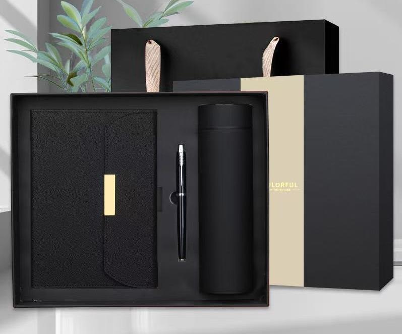 Set Regalo Aziendale di Lusso Personalizzato con Logo: Taccuino A5 Stampato, Penna, Tazza Termica e Copertina Magnetica