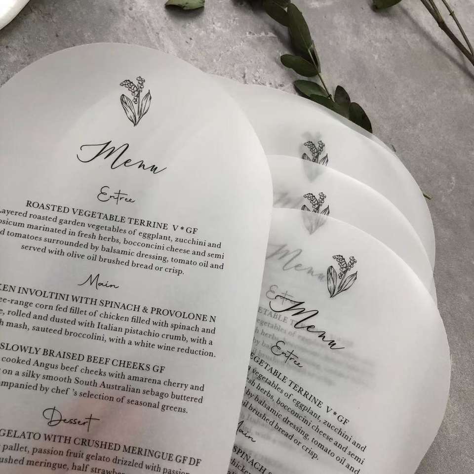 Biglietti di Invito di Lusso Personalizzati in Carta Vellum Bianca Traslucida 185gsm, Stampa a Caldo, Tipografia Raffinata, Etichetta Pendente