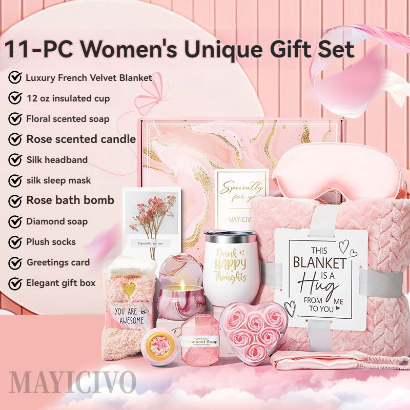Luxury Custom Promotional Gift Basket Women Valentine's/Mother's Day Spa Set Flannel Blanket Tumbler Bath Bombs Self-Care Gifts