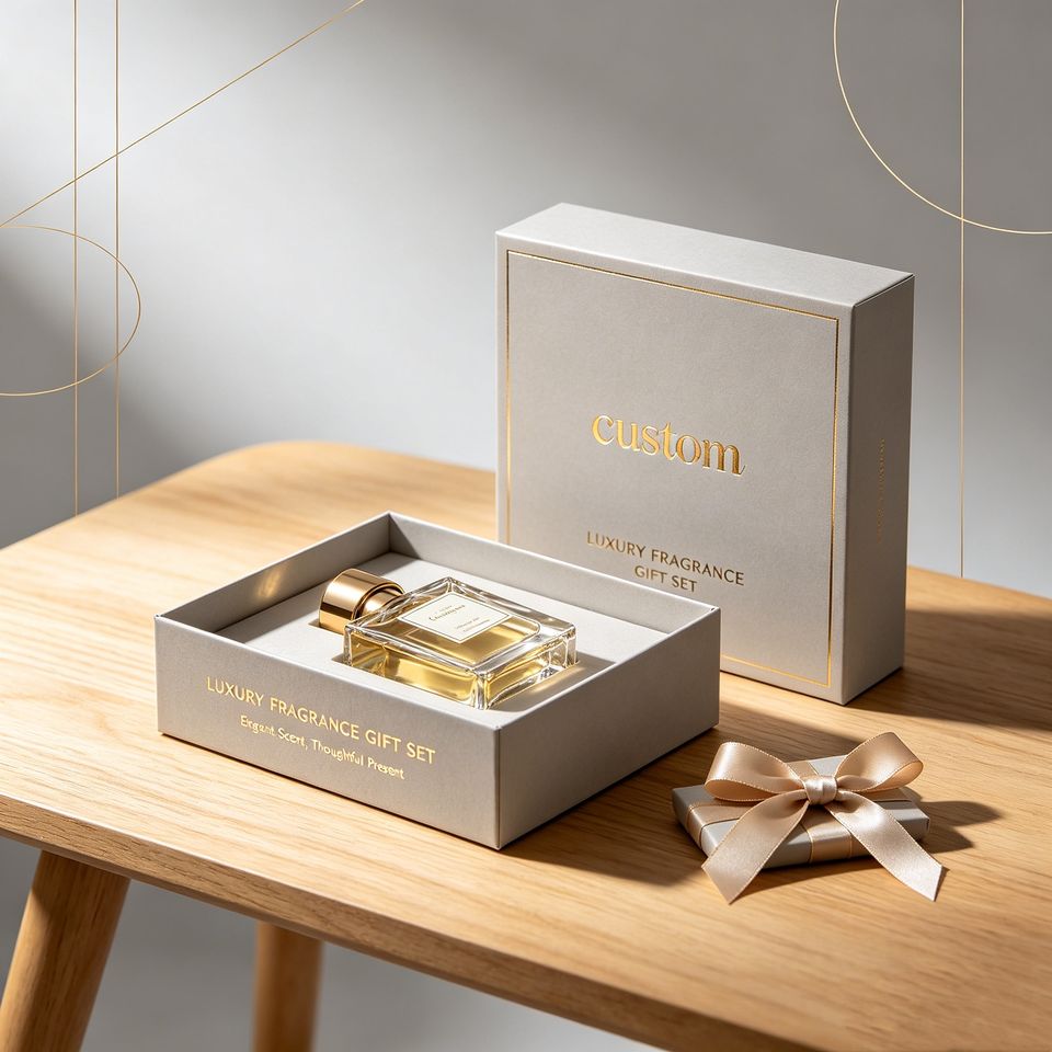 Scatola di Lusso Personalizzata per Profumi con Cartone Riciclabile, Laminazione Lucida/Opaca, Goffratura, Stampa UV a Spot, Opzioni Personalizzabili