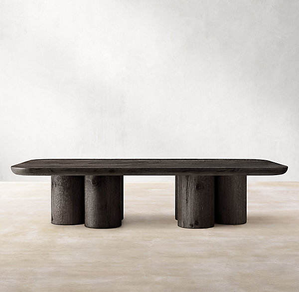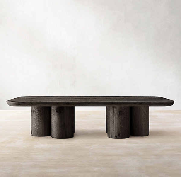 Tavolo da Pranzo di Design di Lusso con Supporti Cilindrici in Legno Forgiato a Mano per Arredamento Soggiorno