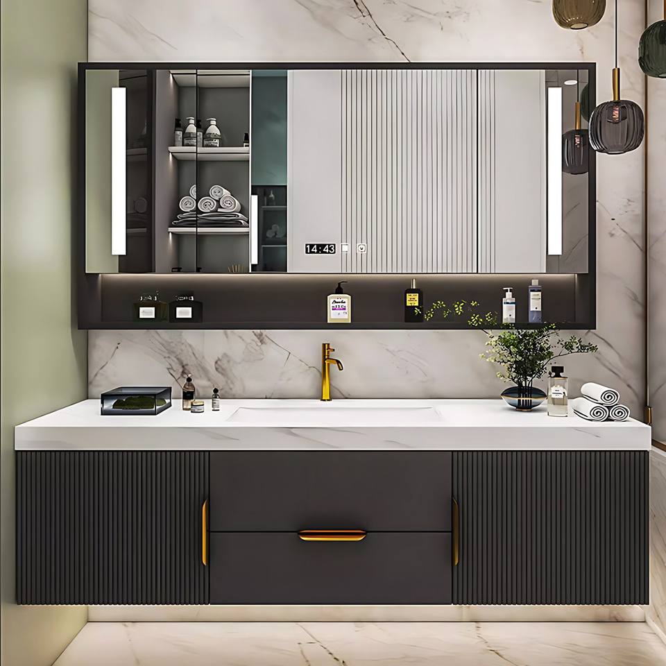 Componenti inclusi:Armadio a specchio antiappannamento a LED con lavandino, rubinetti, tubi di scarico, valvola calda/fredda