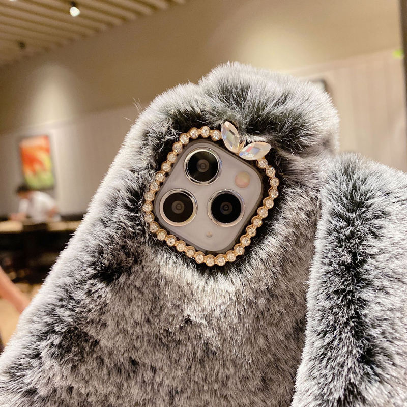 Custodia per telefono in pelliccia di coniglio antiurto di design di lusso per ragazze Cover posteriore rosa carina per iPhone