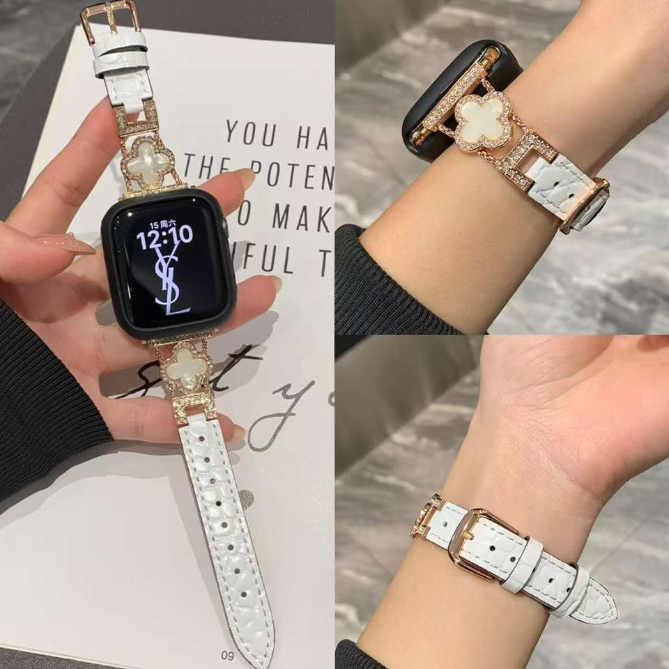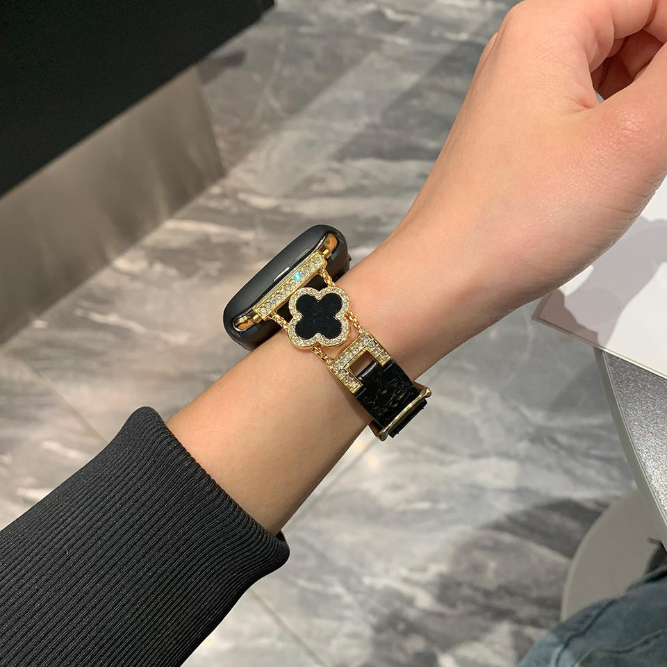 Luxury Designer Watch Bracelet Crocodile Leather Clover Strap for Woman Apple Watch Series 6 7 8 9 41mm 42mm 45mm Band