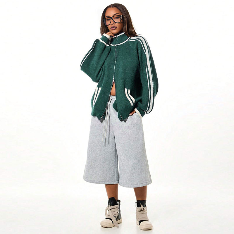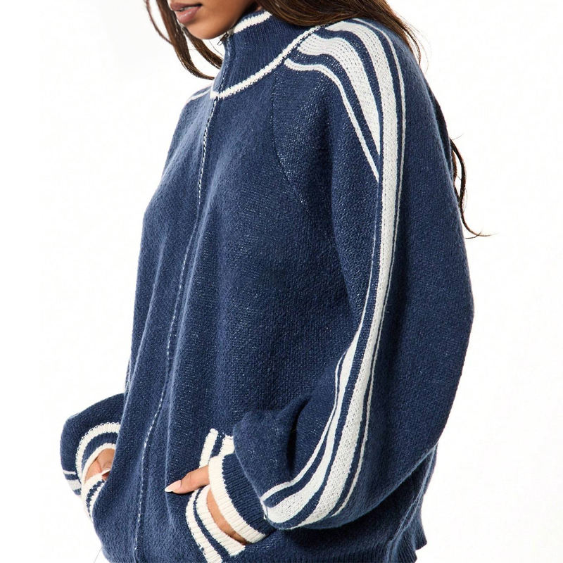 Set di Lusso da Donna con Cardigan a Righe con Zip e Pantaloni Larghi, Elegante Abbigliamento Casual a Due Pezzi per Primavera ed Estate