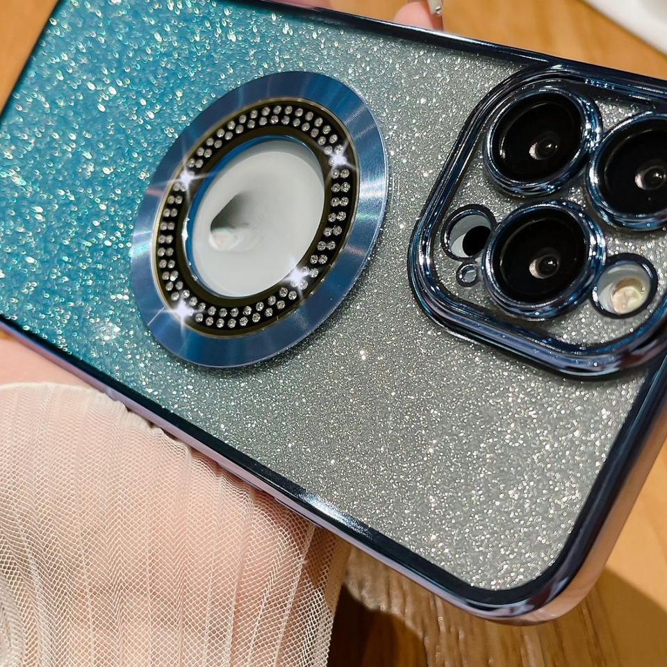 Custodia per telefono in Silicone magnetico con Design diamantato di lusso per iPhone 14 15 Pro Max Cover protettiva per fotocamera elettrolitica da ragazza
