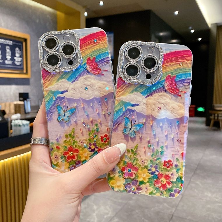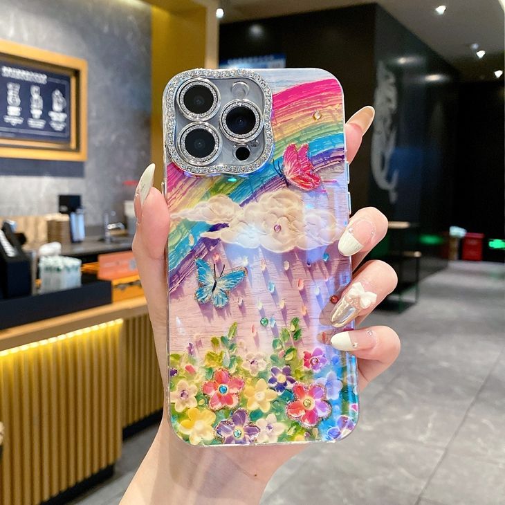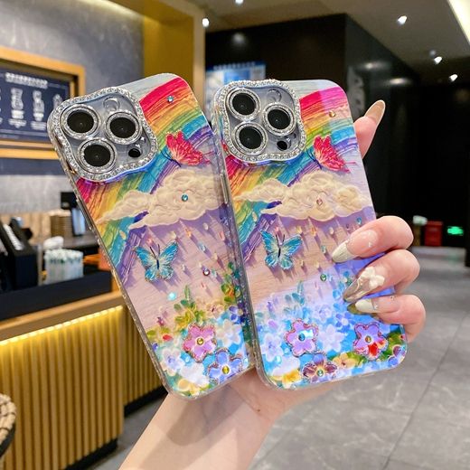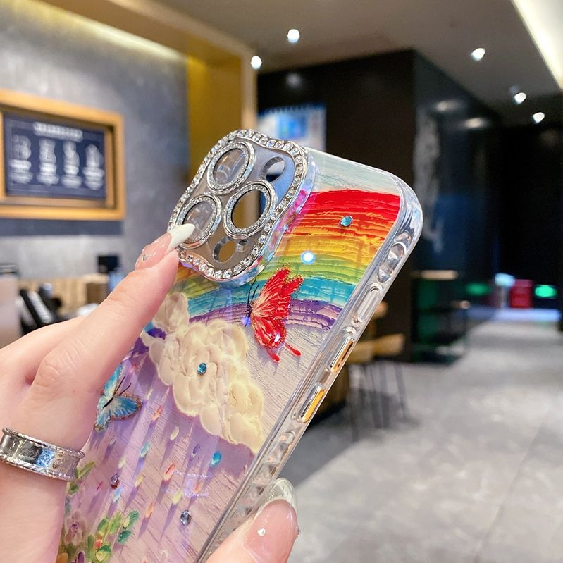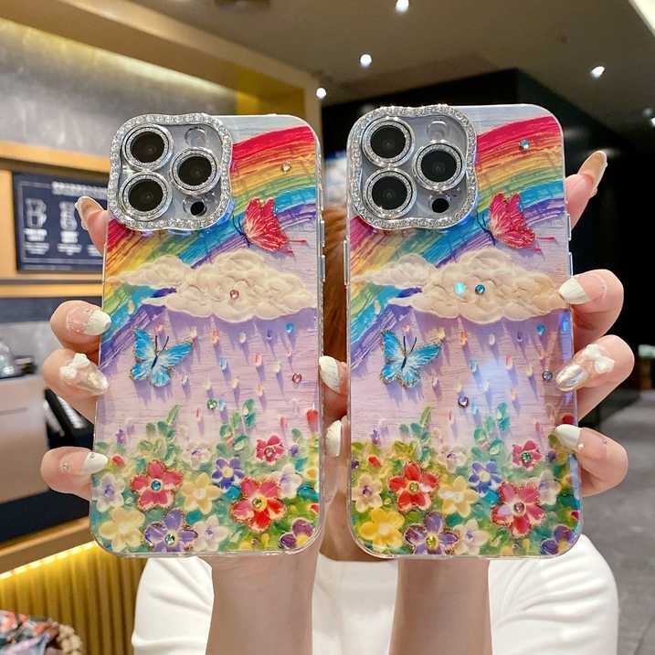 Custodia in morbido TPU con fiore di diamanti di lusso per iPhone 16 Plus 15 Pro 14 Pro Max 13 Mini 12 11 Bling Girls arcobaleno Cover del telefono