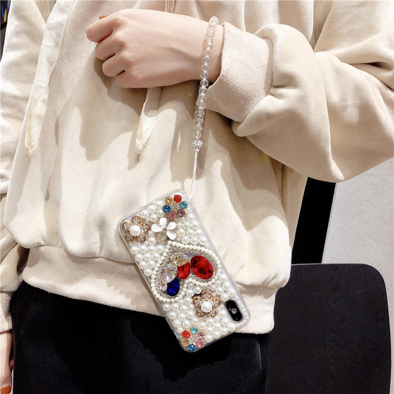 Nome del prodotto:Custodia per telefono a forma di cuore con diamanti e cordino