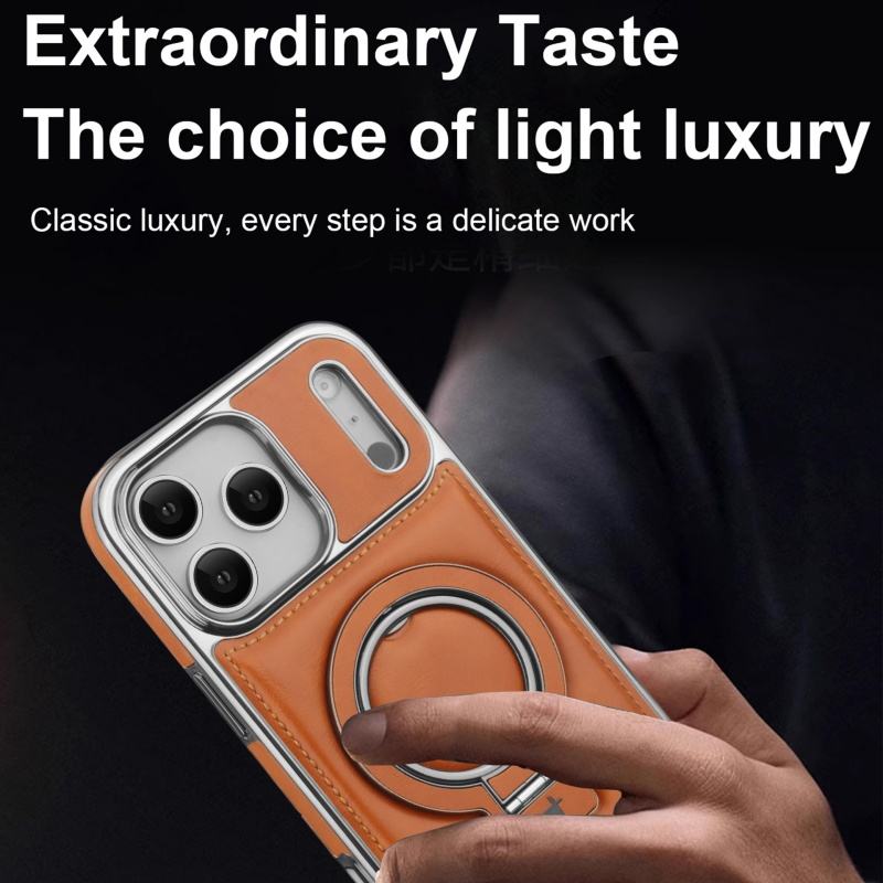 Custodia per telefono in pelle PU galvanizzata di lusso per iPhone 17 16 15 Pro Max Plus con anello rotante e supporto magnetico antiurto