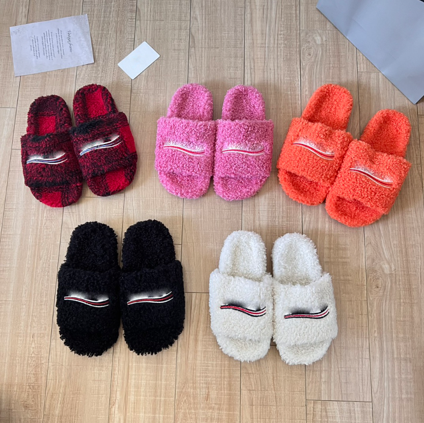 Luxury Embroidery Lamb Fur Slippers Women Fluffy Flat Sandals Thick Soled Winter Warm Outdoor Shoes Unisex