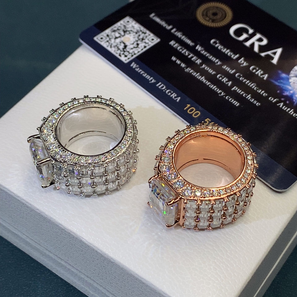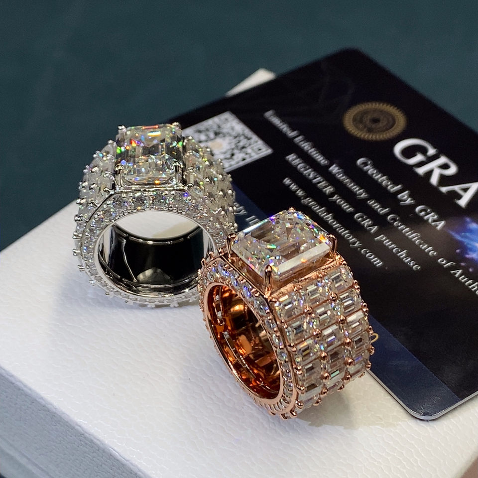 Anelli di Lusso con Moissanite Taglio Smeraldo VVS, Anelli in Argento per Uomo, Gioielli in Moissanite D VVS, Anello in Moissanite Certificato GRA, Stile Hip Hop