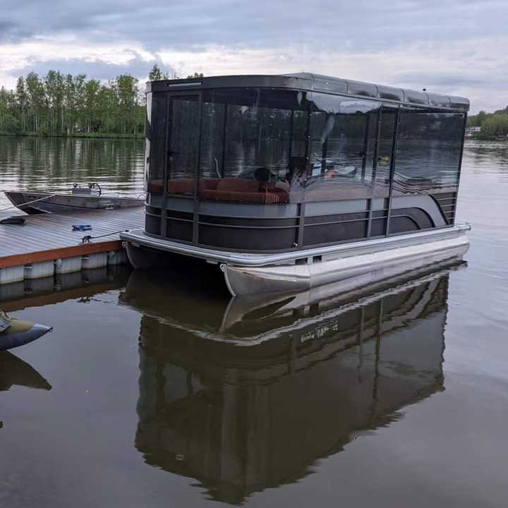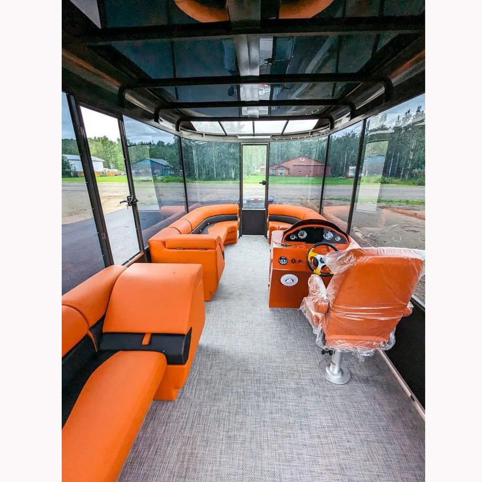 Luxury Enclosed Cabin Pontoon Boat | All-Weather Comfort & Panoramic Views | Manufacturer Direct Sale