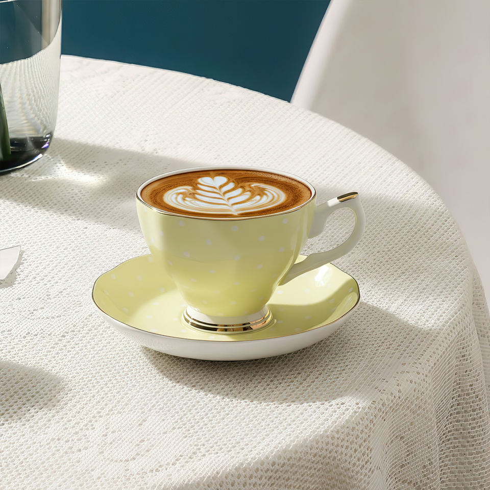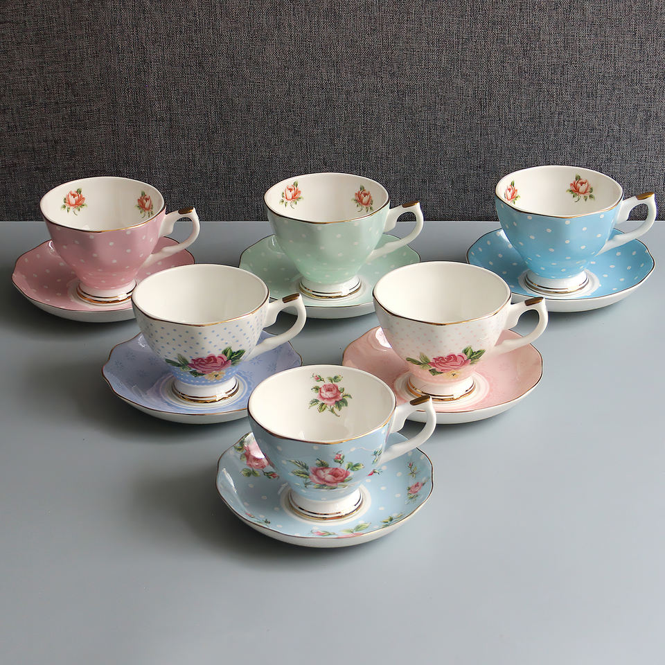 Set di tazze da tè e piattini floreali in stile inglese di lusso, set di tazze da caffè in porcellana