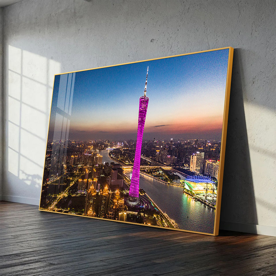 Quadro di Lusso in Resina Epossidica con Diamanti Intarsiati a Mano, Grande Cornice in Alluminio, Paesaggio Urbano, Natura Morta per Soggiorno e Arredamento Hotel