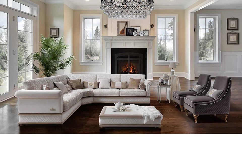 Set di Divani di Lusso in Stile Europeo Antico Nero per Soggiorno, Divano Angolare