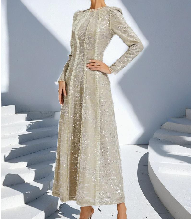 Abito da Sera di Lusso Modesto con Paillettes Abaya Argento Dubai Vestito Maxi Musulmano Lungo da Festa per il Ramadan Abbigliamento di Design ODM